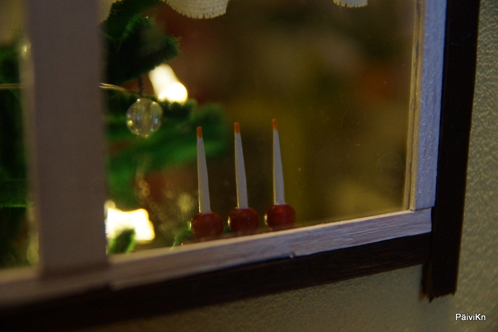 Sarin paketeista paljastui kynttelikkö, joka pääsi olohuoneen ikkunalle. Samassa paketissa olis lippunauha, jonka käärin odottamaan käyttöä. Toisessa paketissa oli polttopuuteline. Sen paikka jää myös myöhemmin päätettäväksi.